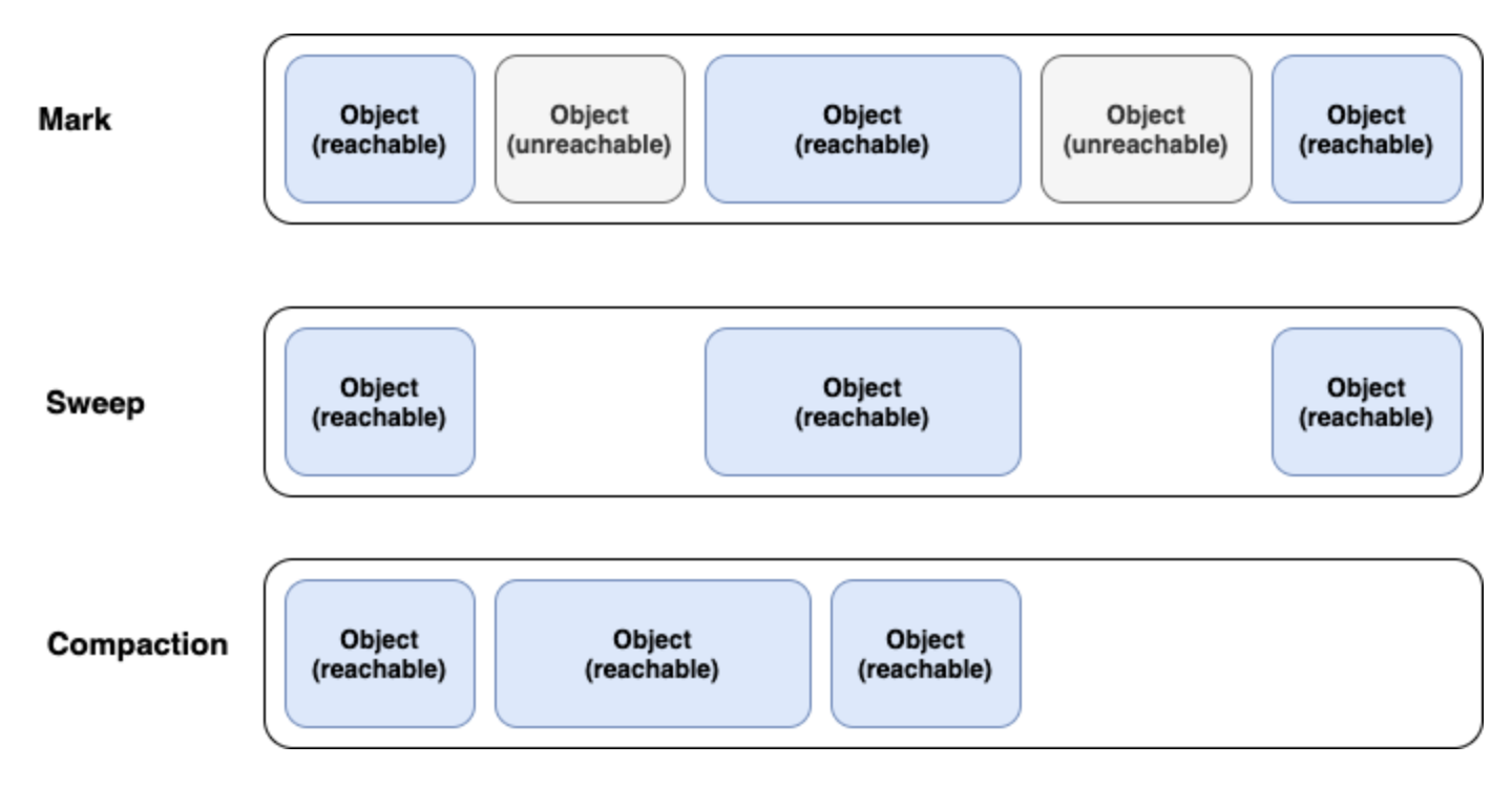 - 컴팩션 -> 파편화된 메모리 영역을 앞에서부터 채워나가는 작업