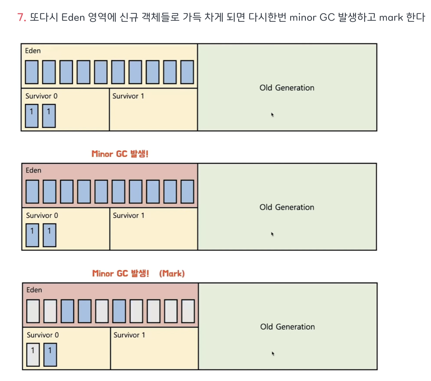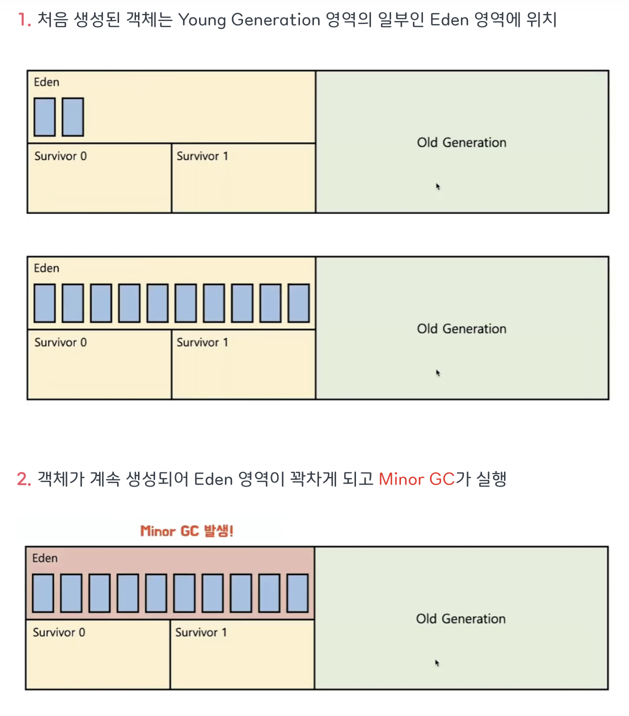 - 이곳에서의 gc 동작을 Minor gc라고함