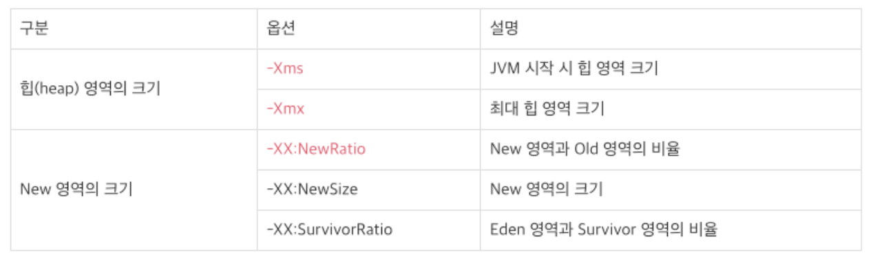 - -Xmn(new 영역)이나 -XX:NewRatio 설정을 피해야 한다.