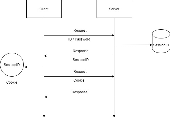 - 서버는 로그인 정보 확인 후 세션아이디를 응답한다. 이 세션아이디는 서버에서도 가지고있는다.