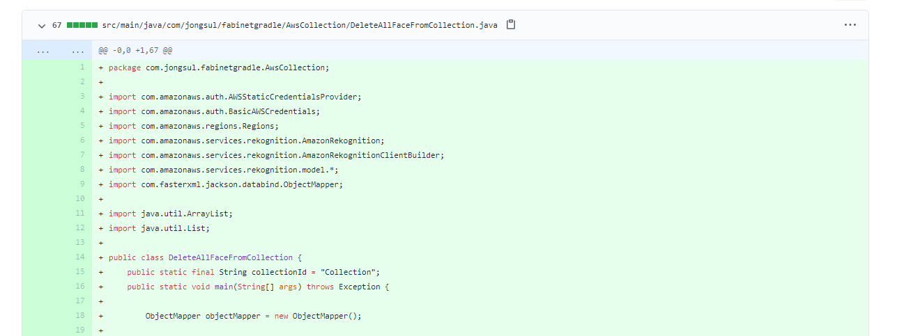 (사진은 AwsConfig가 아닌 다른 클래스긴 하지만 여기에도 인증코드가 있었고 잘 지워진 모습이다.)