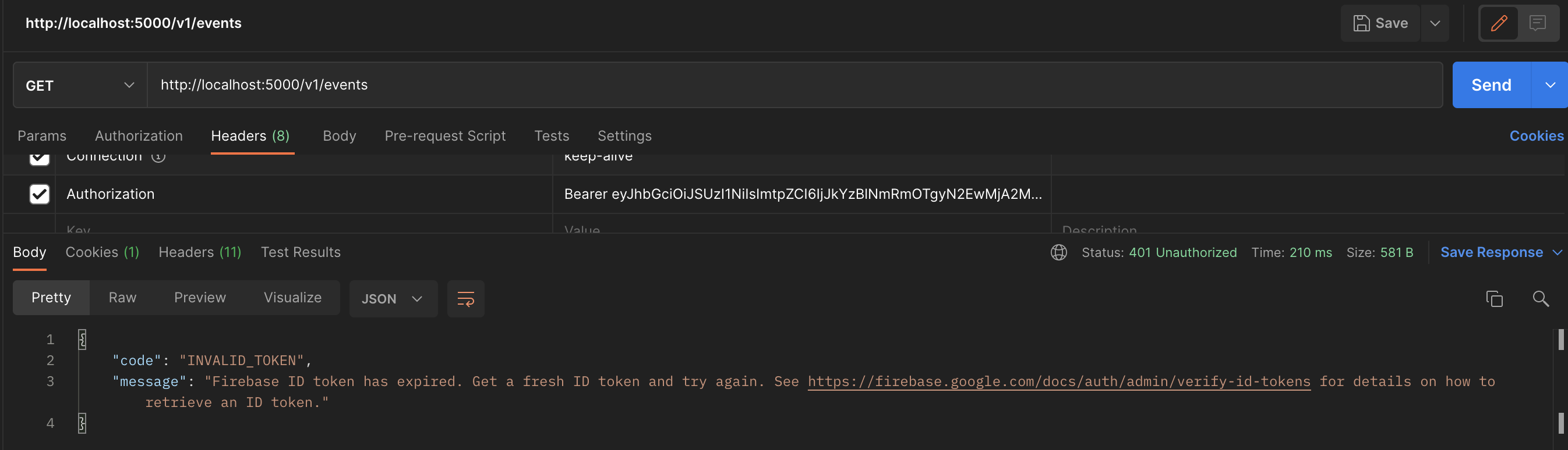 만료된 JWT Token으로 접근을 시도하면 401을 뱉으며 잘 쳐내는 것을 볼 수 있다.