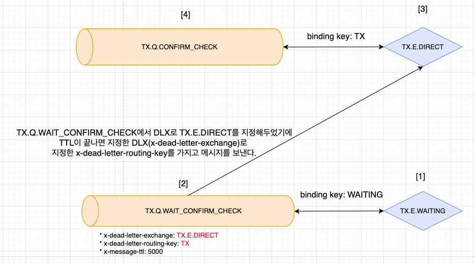 따라서 TX.E.DIRECT 익스체인지에 도착한 메시지는 TX.Q.CONFIRM_CHECK 큐로 다시 보내진다.