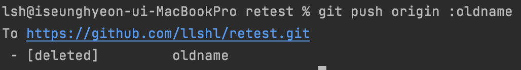 아까 로컬에서의 git branch -m옵션으로 oldname브랜치의 이름을 newname으로 바꿨기에