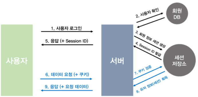 - 서버는 로그인 정보 확인 후 세션아이디를 응답한다. 이 세션아이디는 서버에서도 가지고있는다.